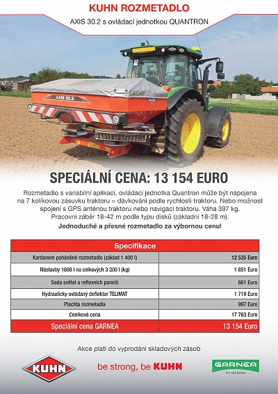 V našem portfoliu se nachází i zemědělská technika KUHN Center CZ. Připravili jsme pro vás speciální nabídku na KUHN rozmetadla.