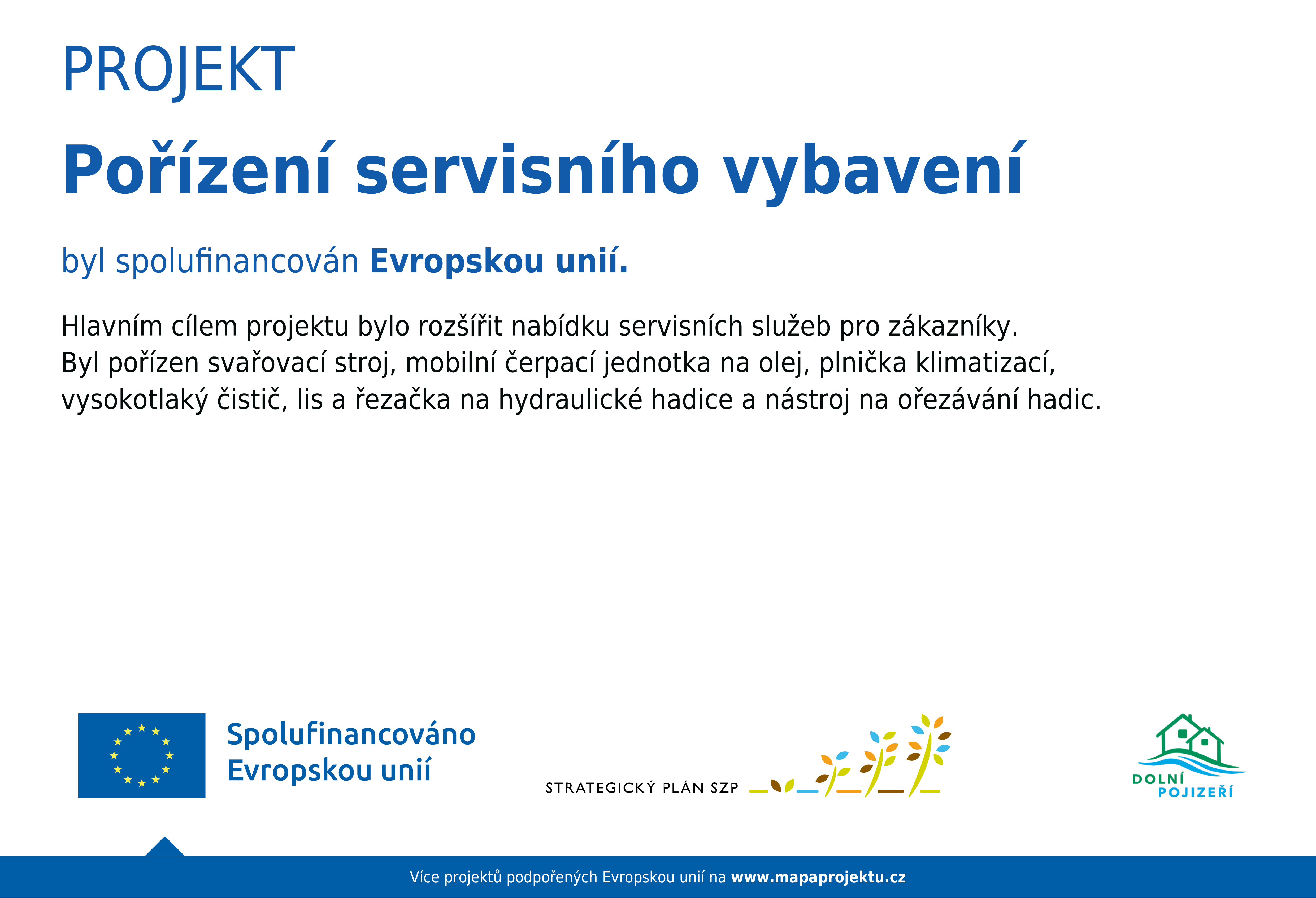 Společnost GARNEA a.s. díky podpoře od Místní akční skupiny Dolní Pojizeří z.ú. rozšířila servisní vybavení své pobočky v Milovicích, která sídlí na adrese Ostravská 779, 289 24 Milovice. Společnost uspěla s projektem „Pořízení servisního vybavení“ ve 2. Výzvě Strategického plánu Společné zemědělské politiky vyhlášené Místní akční skupinou Dolní Pojizeří z.ú. V rámci projektu bylo pořízeno zařízení na výrobu a opravu hydraulických hadic, svářecí stroj, plnička klimatizací, mobilní čerpadlo na olej a vysokotlaký čistič. Žádost o dotaci byla zpracována společností GARANTA CZ a.s. z Českých Budějovic.